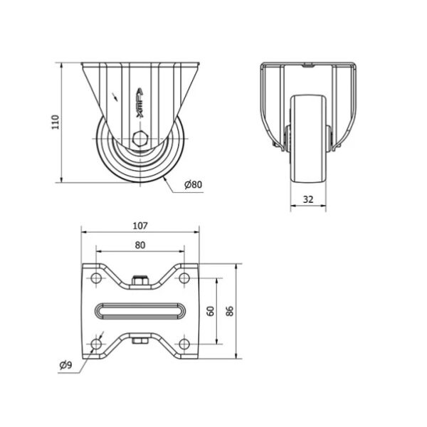 Rueda poliuretano fija Alex diametro 80 mm. 2-0329
