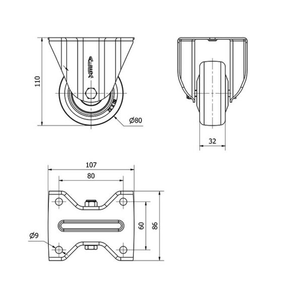 Rueda poliuretano fija Alex diametro 80 mm. 2-4699