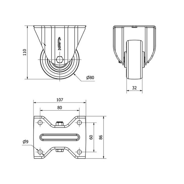 Rueda poliuretano fija Alex diametro 80 mm. modelo 2-2917