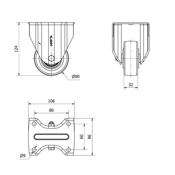 Rueda poliuretano fija Alex diametro 80 mm. modelo 2-4631