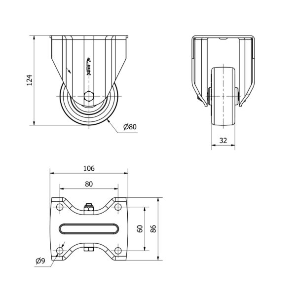 Rueda poliuretano fija Alex diametro 80 mm. modelo 2-4671