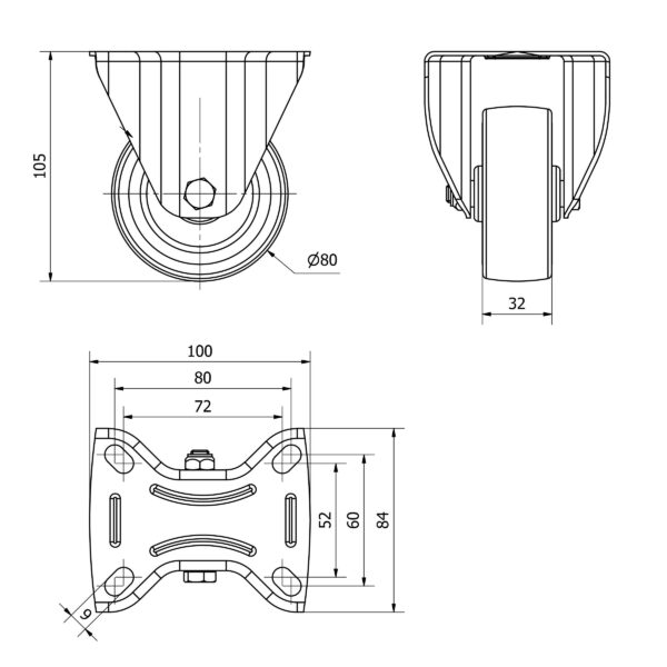 Rueda poliuretano fija Alex diametro 80 mm. modelo TW0214