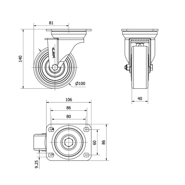 Rueda poliuretano giratoria Alex diametro 100 mm. 2-0393 EAN 8422202203935