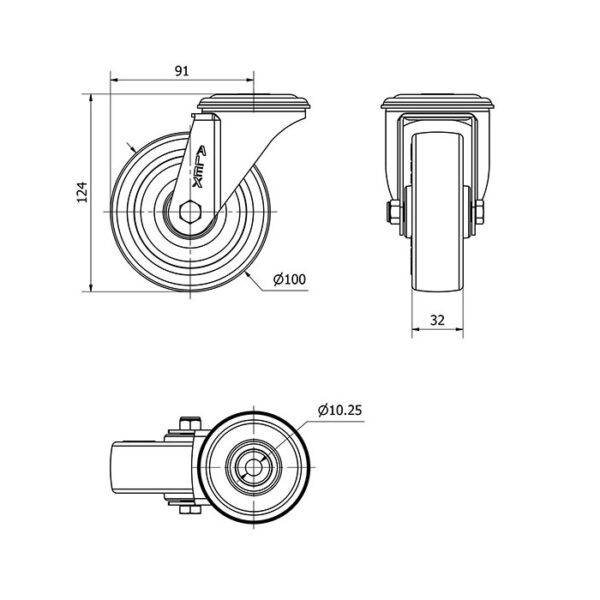 Rueda poliuretano giratoria Alex diametro 100 mm. 2-2968