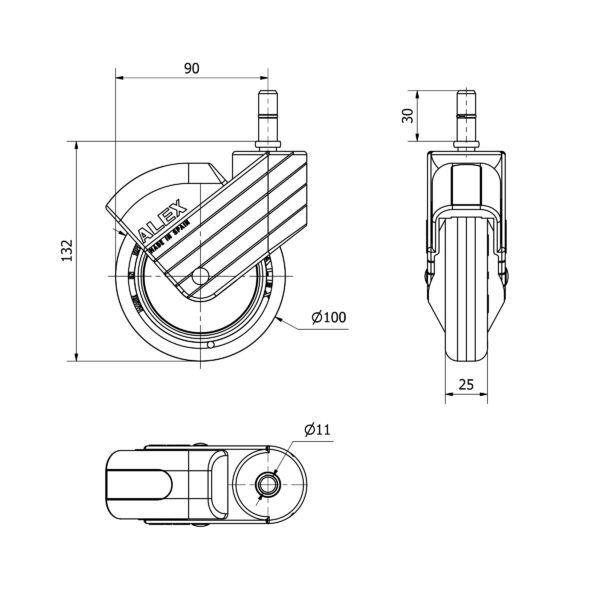 Rueda poliuretano giratoria Alex diametro 100 mm. 2-3573