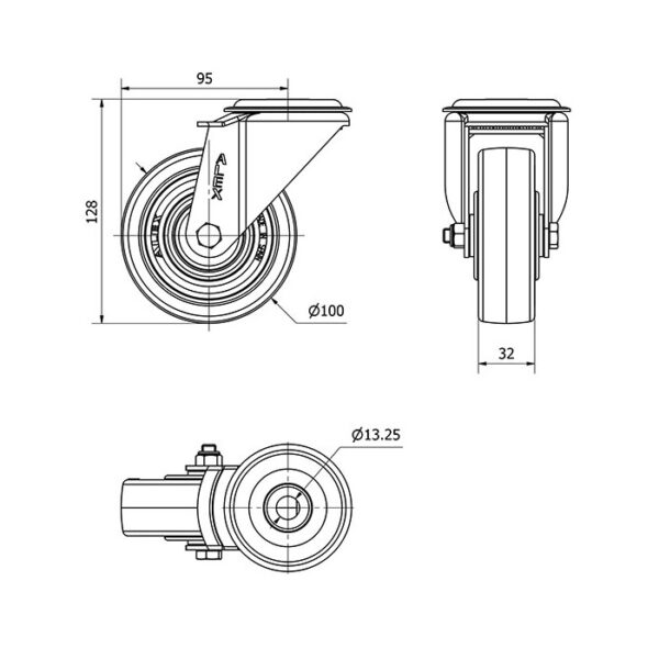 Rueda poliuretano giratoria Alex diametro 100 mm. modelo 2-2327