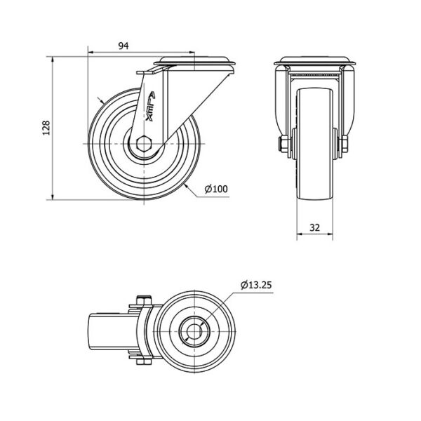 Rueda poliuretano giratoria Alex diametro 100 mm. modelo 2-2374