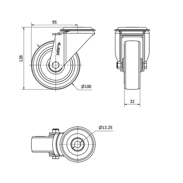 Rueda poliuretano giratoria Alex diametro 100 mm. modelo 2-2833
