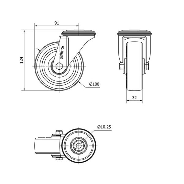 Rueda poliuretano giratoria Alex diametro 100 mm. modelo 2-2978