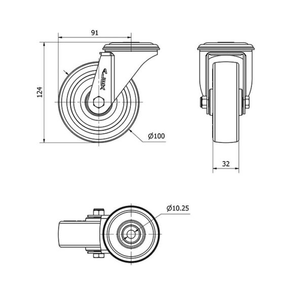 Rueda poliuretano giratoria Alex diametro 100 mm. modelo 2-2983