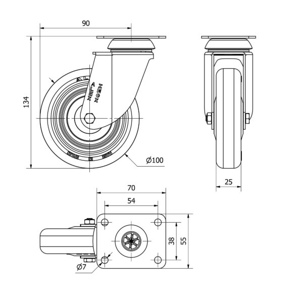 Rueda poliuretano giratoria Alex diametro 100 mm. modelo 2-3050