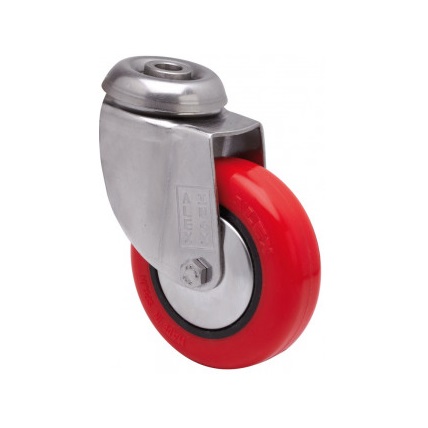 La serie de ruedas Alex BHI INOX-PPI son de poliuretano inyectado, con todos sus componentes de acero inoxidable (AISI-304), indicadas para soportar cargas hasta 80 Kg. Se utilizan en exteriores, carros de transporte de alimentación, cantinas, comedores y restaurantes. PPI: Silenciosa e indeformable y de fácil desplazamiento con carga.