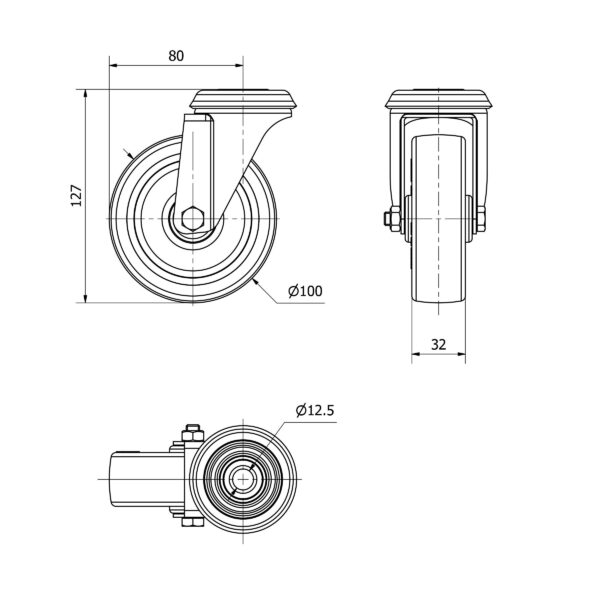 Rueda poliuretano giratoria Alex diametro 100 mm. modelo 2-3102