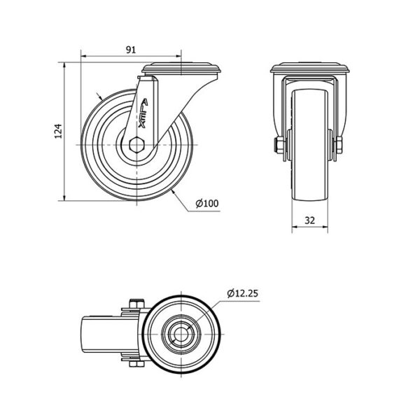 Rueda poliuretano giratoria Alex diametro 100 mm. modelo 2-4113