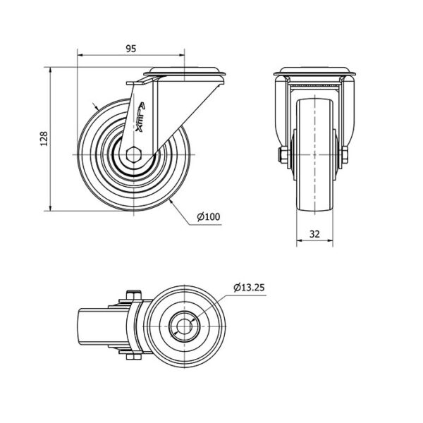 Rueda poliuretano giratoria Alex diametro 100 mm. modelo 2-4233