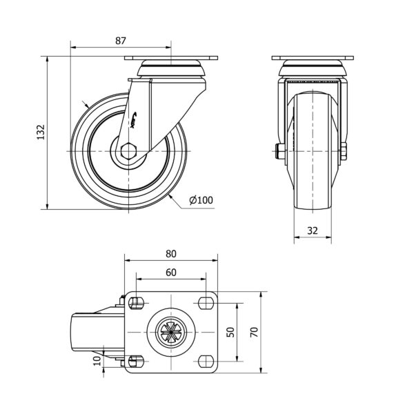 Rueda poliuretano giratoria Alex diametro 100 mm. modelo 2-4674