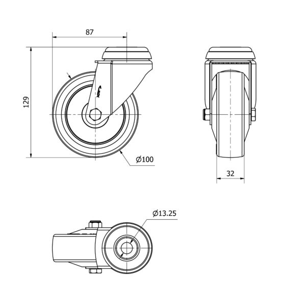 Rueda poliuretano giratoria Alex diametro 100 mm. modelo 2-4678
