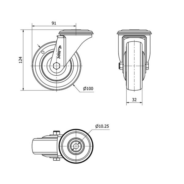 Rueda poliuretano giratoria Alex diametro 100 mm. modelo 2-4708