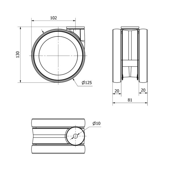 Rueda poliuretano giratoria Alex diametro 125 mm. 2-4988