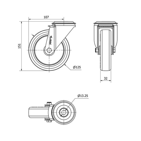 Rueda poliuretano giratoria Alex diametro 125 mm. modelo 2-2873