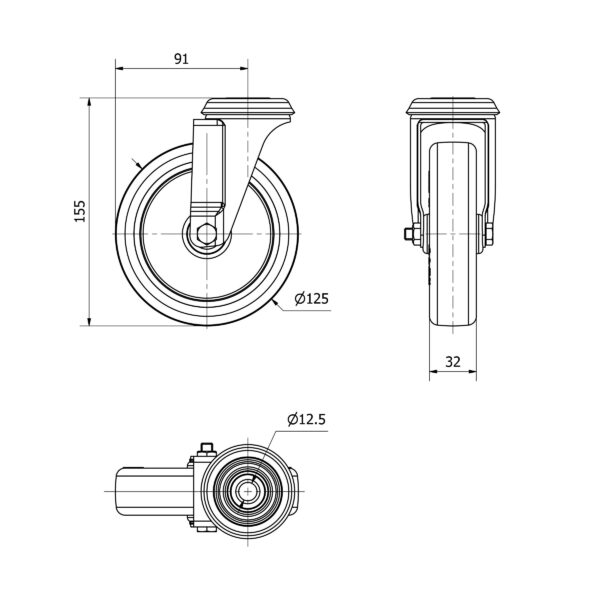 Rueda poliuretano giratoria Alex diametro 125 mm. modelo 2-3103