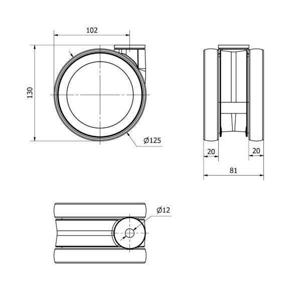 Rueda poliuretano giratoria Alex diametro 125 mm. modelo 2-4689