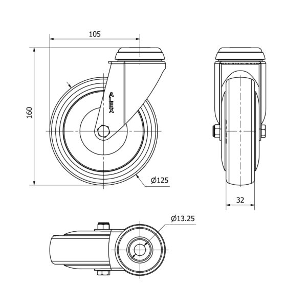 Rueda poliuretano giratoria Alex diametro 125 mm. modelo 2-4737