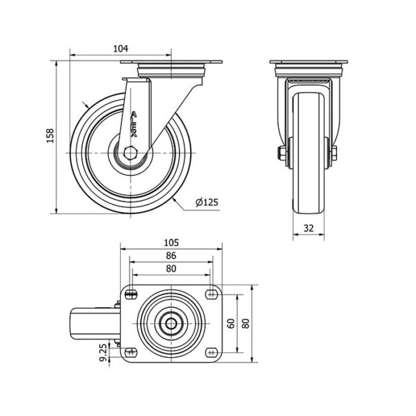 Rueda poliuretano giratoria Alex diametro 125 mm. modelo 2-4888