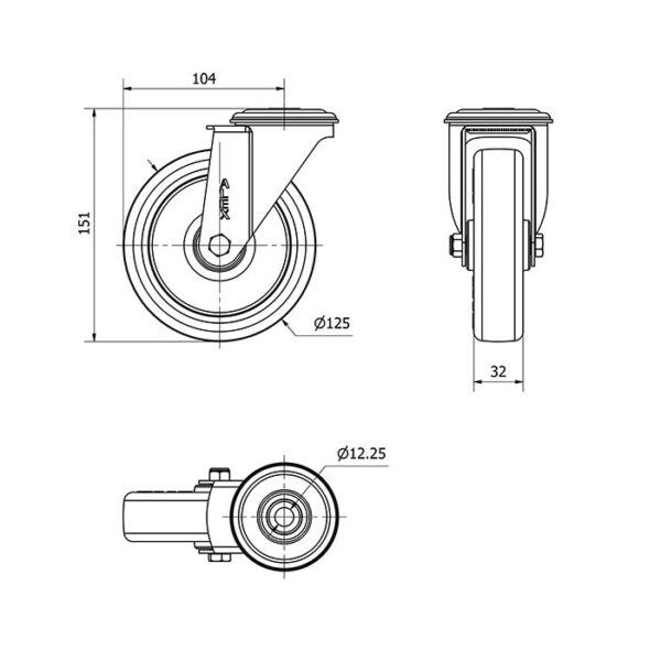 Rueda poliuretano giratoria Alex diametro 125 mm. modelo 2-4971