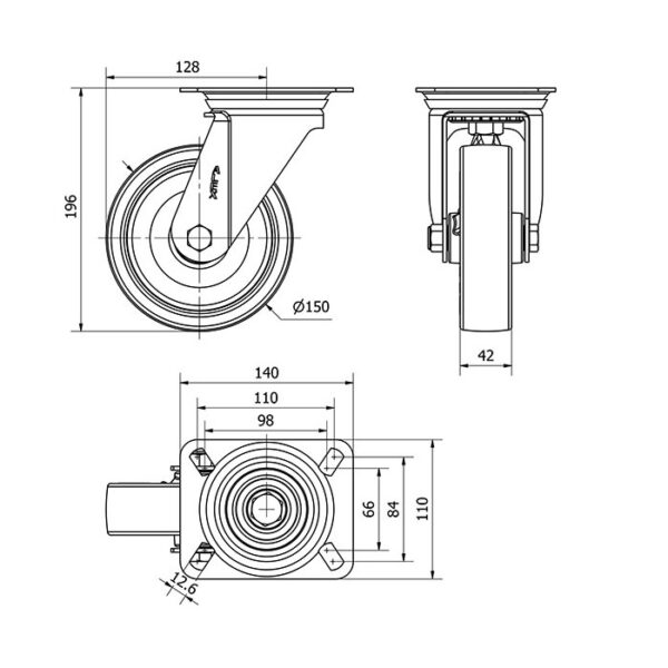 Rueda poliuretano giratoria Alex diametro 150 mm. 2-1174