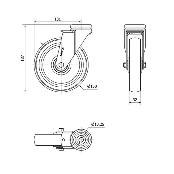 Rueda poliuretano giratoria Alex diametro 150 mm. 2-3587