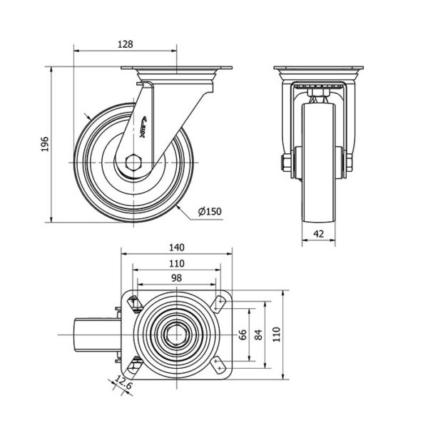 Rueda poliuretano giratoria Alex diametro 150 mm. modelo 2-2420 EAN 8422202224206