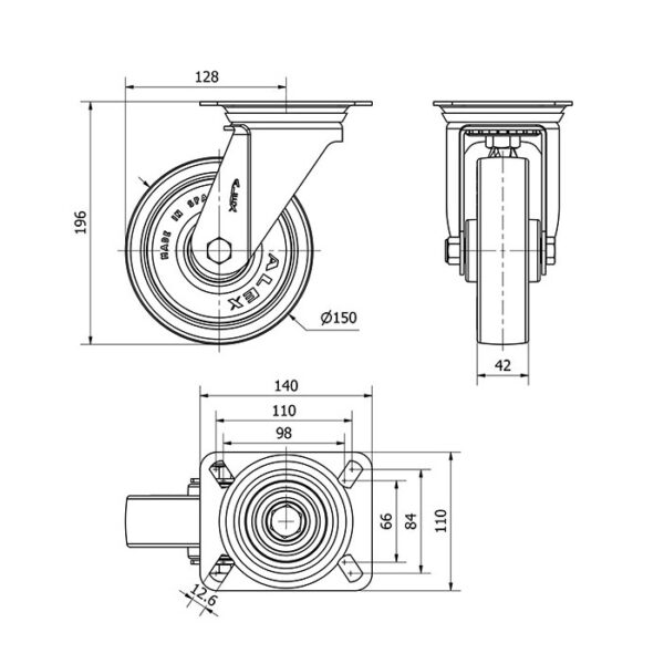Rueda poliuretano giratoria Alex diametro 150 mm. modelo 2-3479 EAN 8422202234793