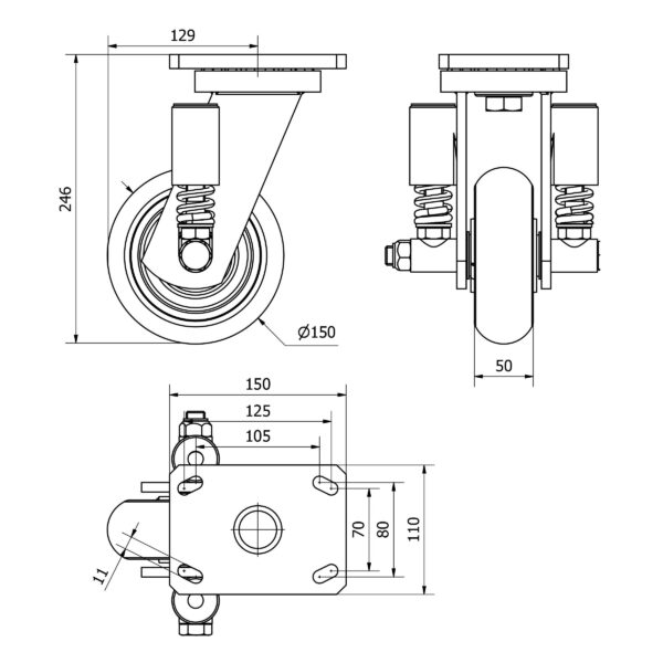 Rueda poliuretano giratoria Alex diametro 150 mm. modelo 2-3542
