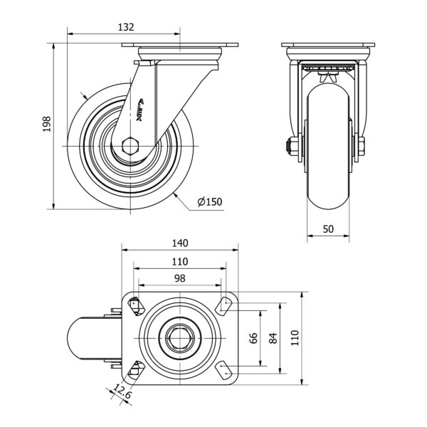 Rueda poliuretano giratoria Alex diametro 150 mm. modelo 2-3857