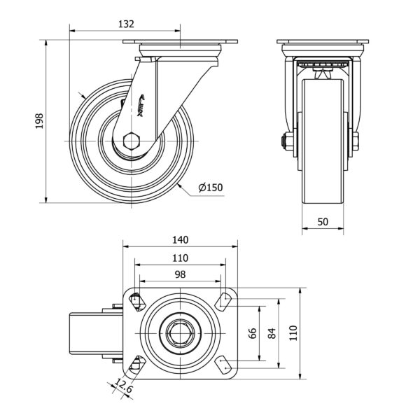 Rueda poliuretano giratoria Alex diametro 150 mm. modelo 2-3865