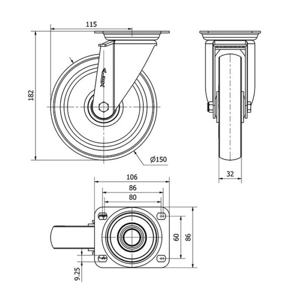 Rueda poliuretano giratoria Alex diametro 150 mm. modelo 2-4270