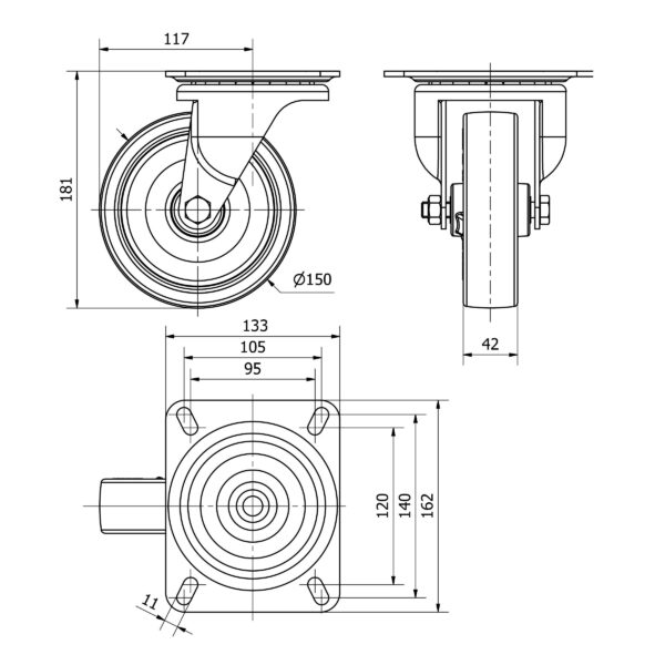 Rueda poliuretano giratoria Alex diametro 150 mm. modelo 4-0266 EAN 8422202402666