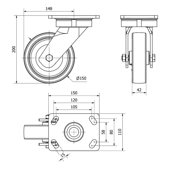 Rueda poliuretano giratoria Alex diametro 150 mm. modelo 4-0935