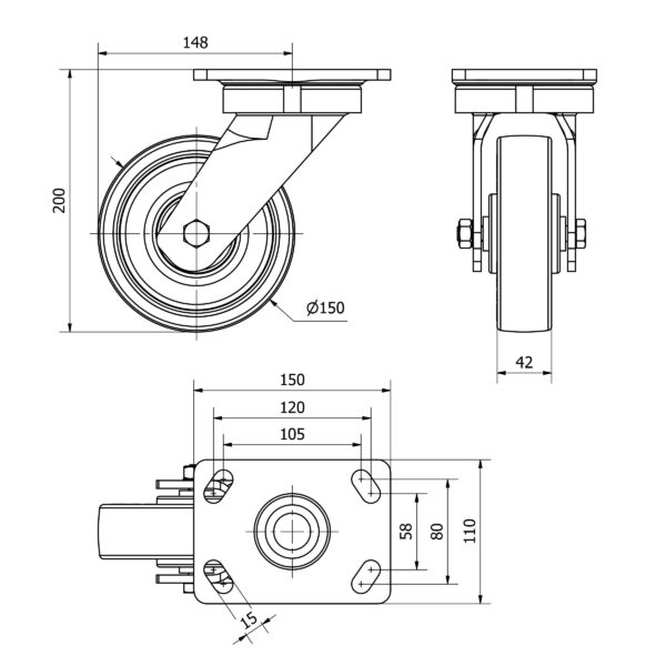 Rueda poliuretano giratoria Alex diametro 150 mm. modelo 4-0937