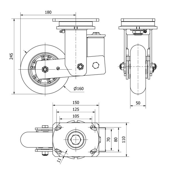 Rueda poliuretano giratoria Alex diametro 160 mm. 2-4053