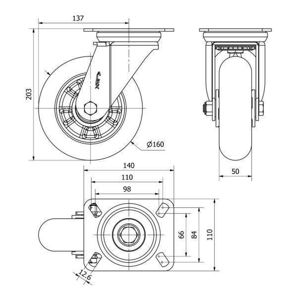 Rueda poliuretano giratoria Alex diametro 160 mm. modelo 2-3966