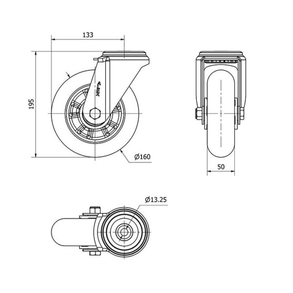 Rueda poliuretano giratoria Alex diametro 160 mm. modelo 2-4392