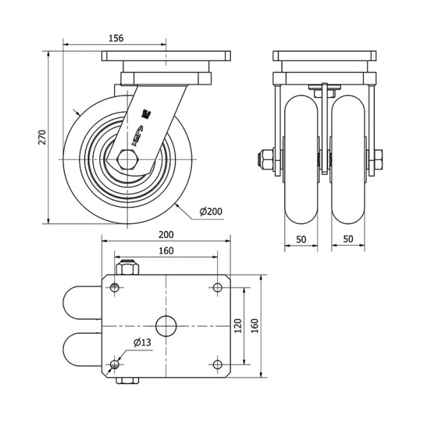 Rueda poliuretano giratoria Alex diametro 200 mm. 2-0044