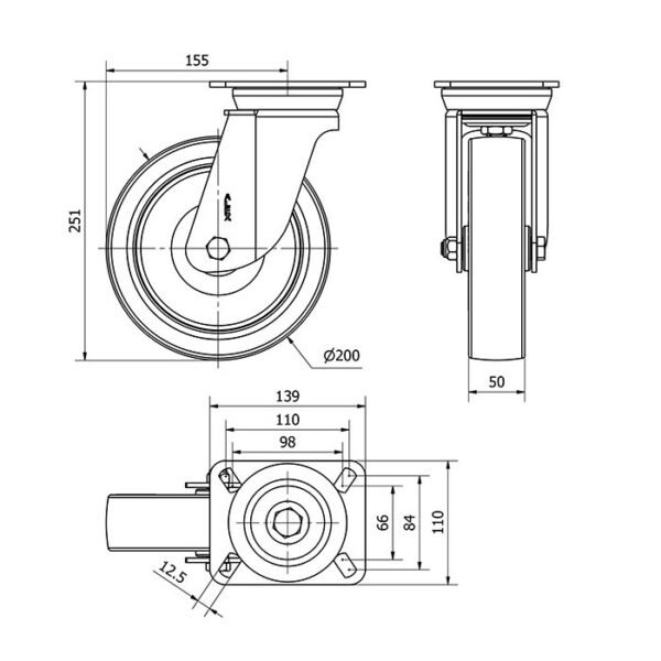 Rueda poliuretano giratoria Alex diametro 200 mm. modelo 2-0309
