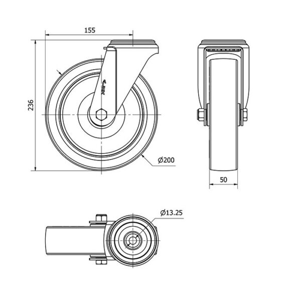 Rueda poliuretano giratoria Alex diametro 200 mm. modelo 2-1411 EAN 8422202214115