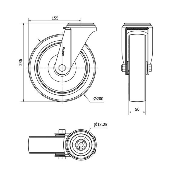 Rueda poliuretano giratoria Alex diametro 200 mm. modelo 2-2439
