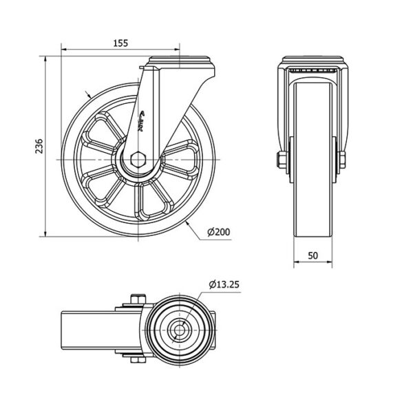 Rueda poliuretano giratoria Alex diametro 200 mm. modelo 2-2541 EAN 8422202225418