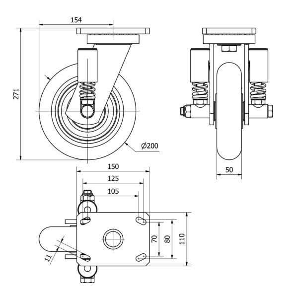 Rueda poliuretano giratoria Alex diametro 200 mm. modelo 2-3543