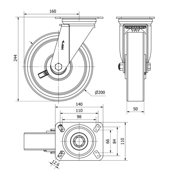 Rueda poliuretano giratoria Alex diametro 200 mm. modelo 2-3869